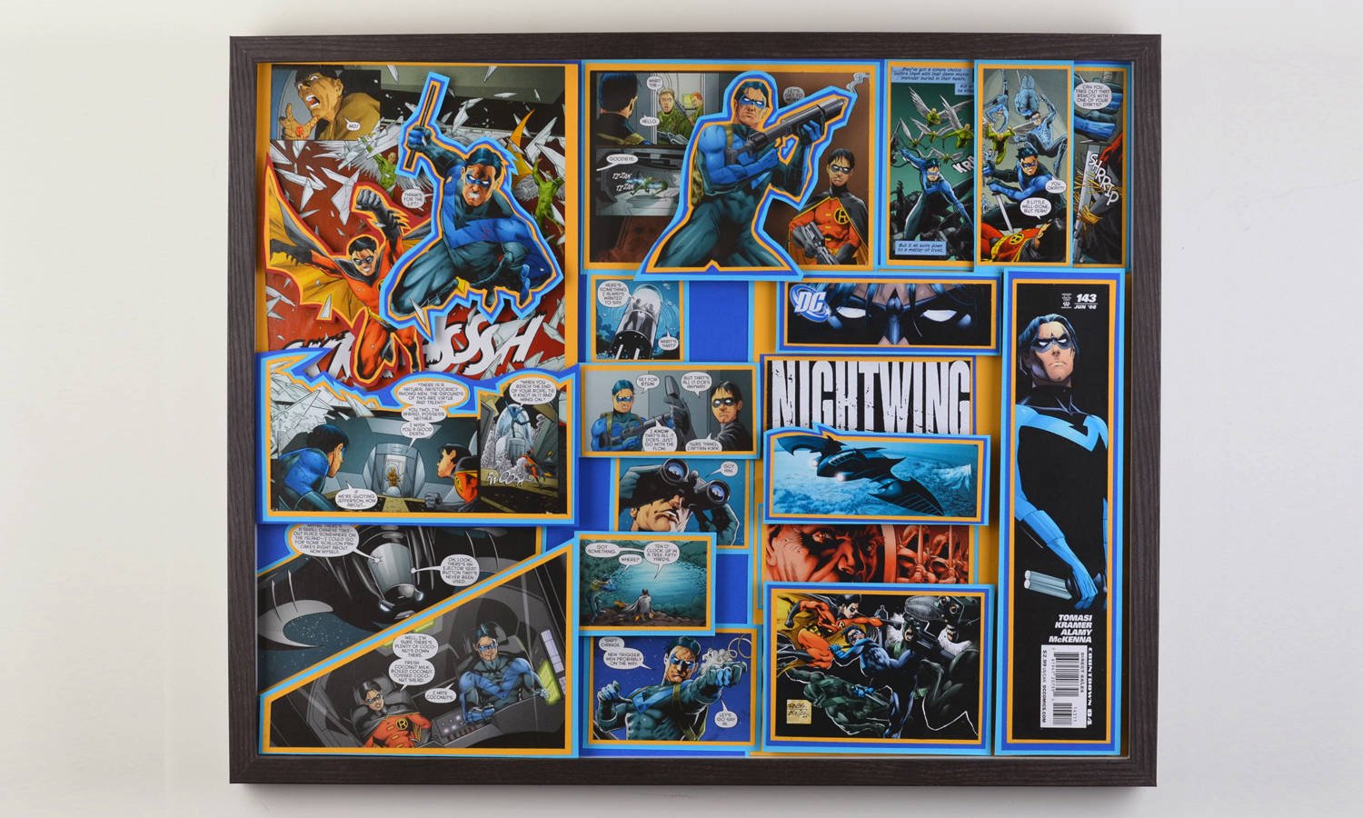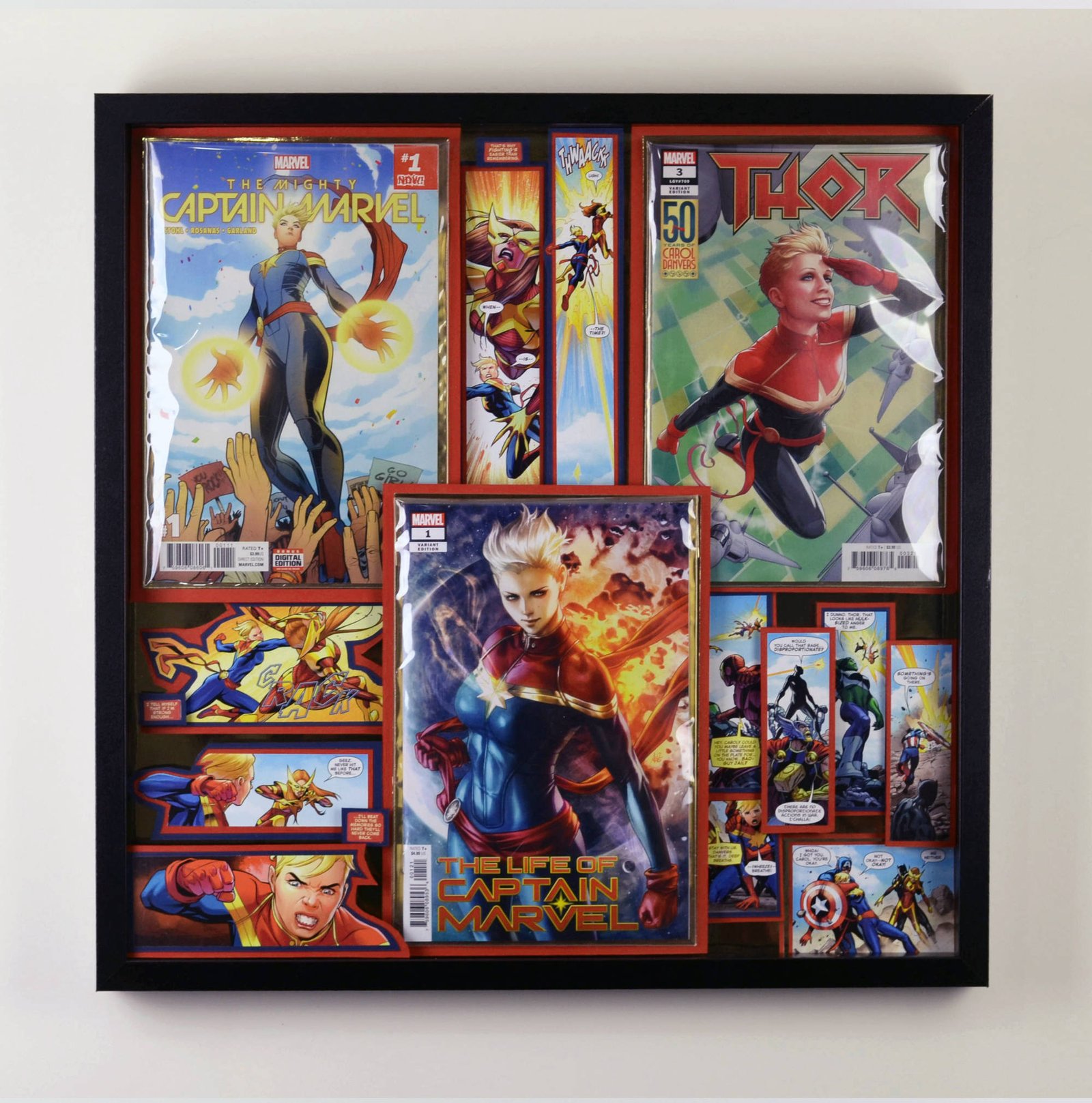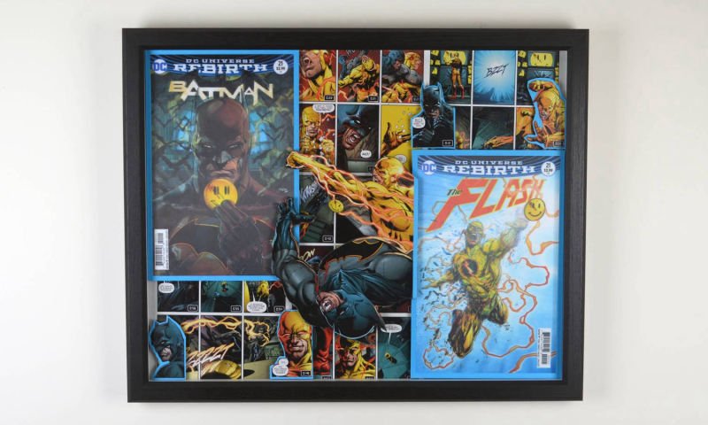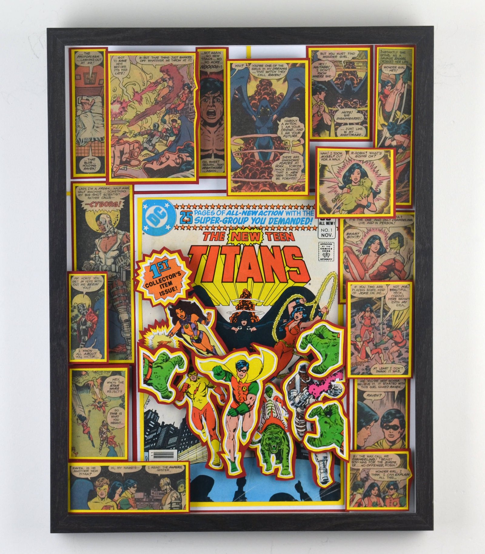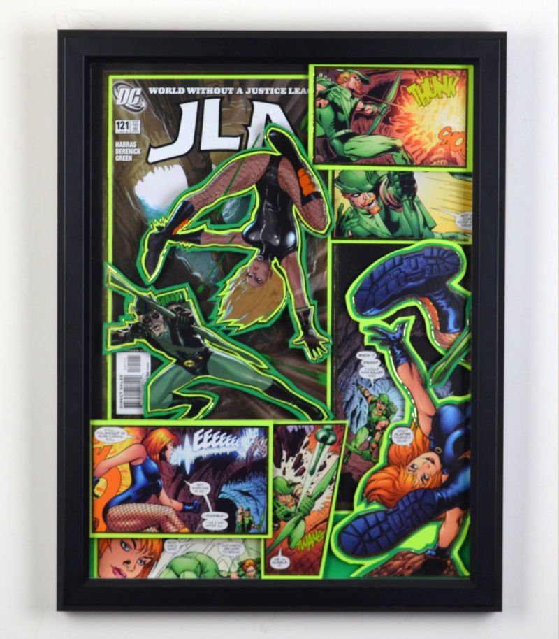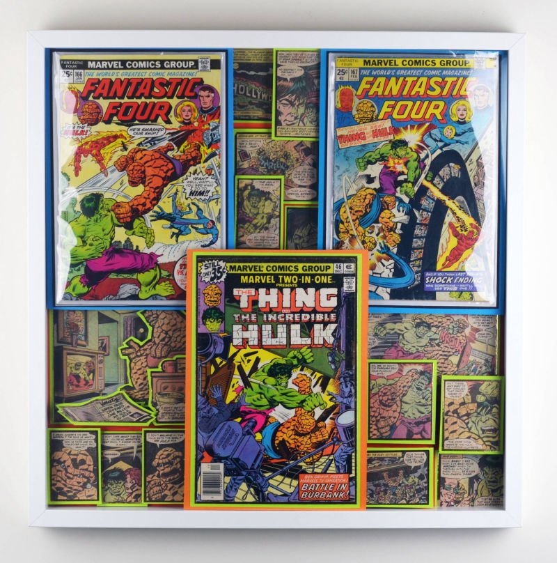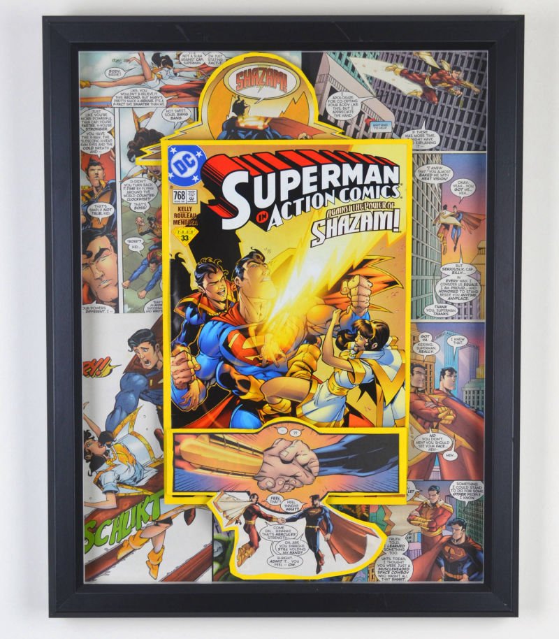 Even larger, these huge 20"x20" Treasury Edition 3D Comic Collages hold a huge punch of power in showcasing multiple books in an amazing treasury wall piece. These pieces are available only at shows or at one of our Comic Shop Partner shops since they are too big to make it safely through the mail... With a limited supply of frames in this size, commissions for a piece of this size are currently limited.