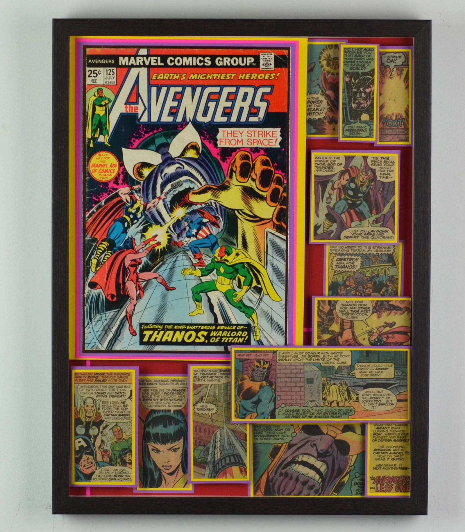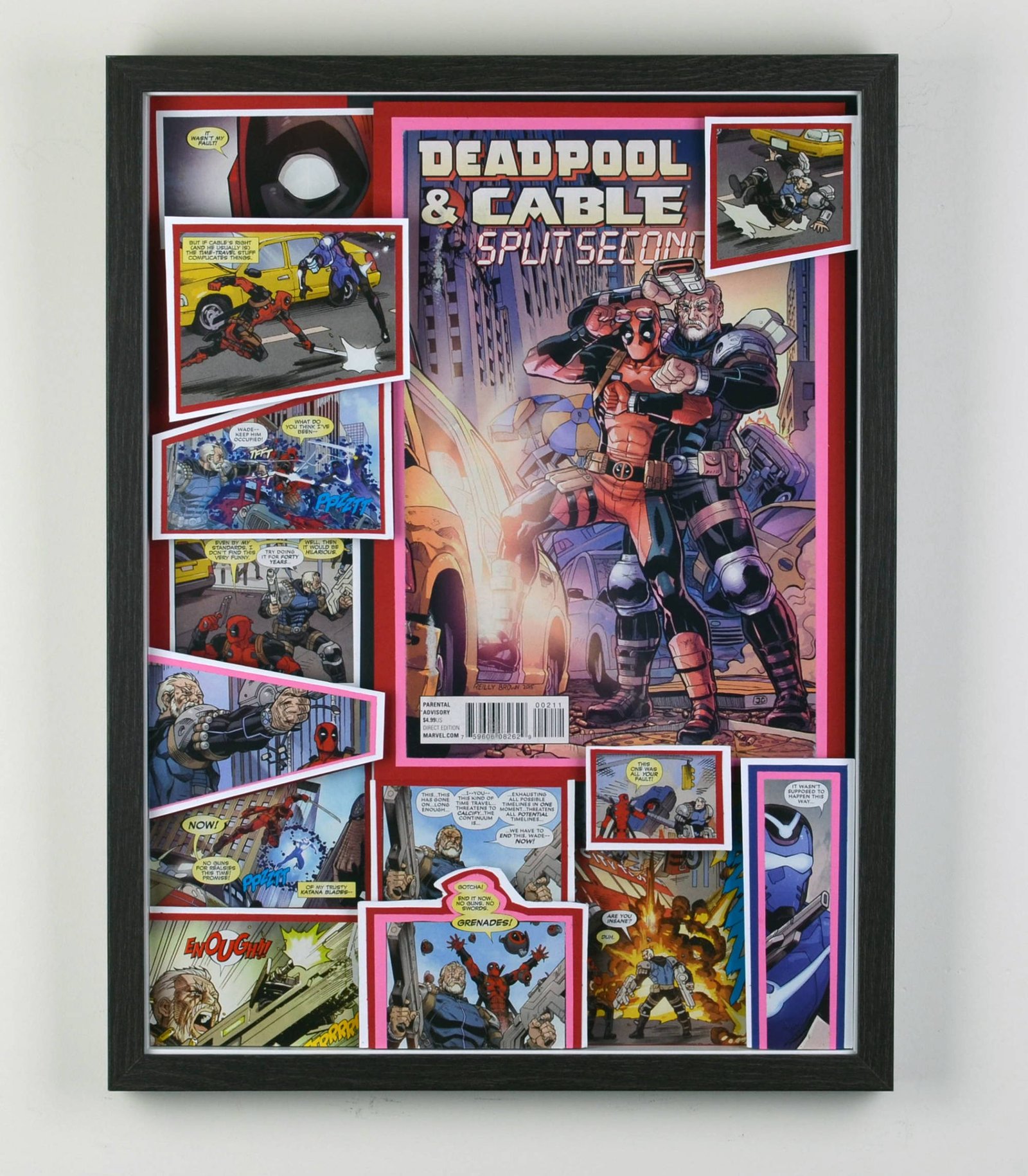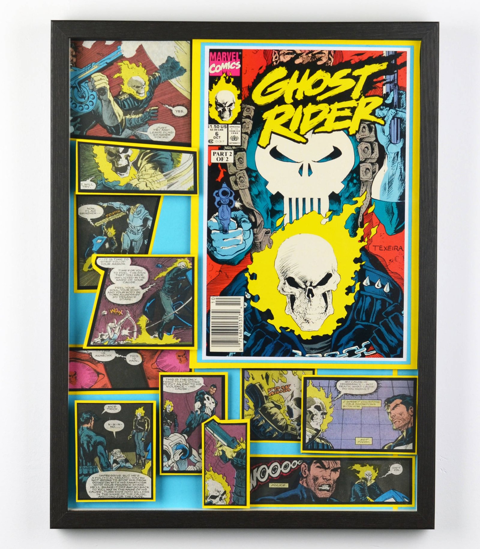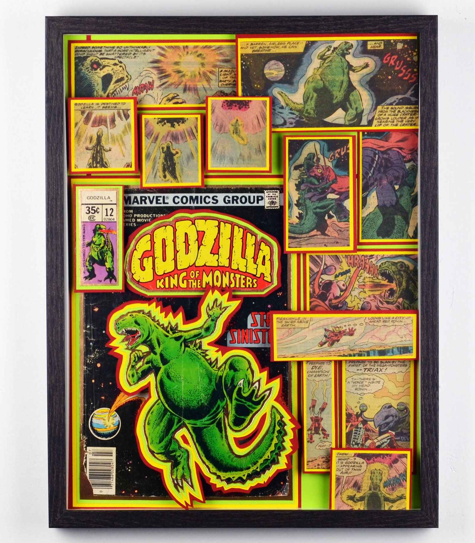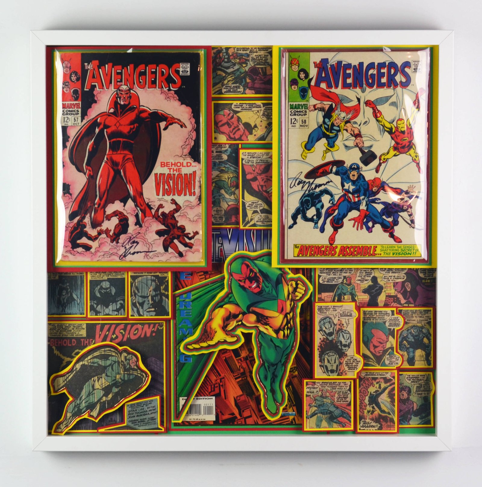 Even larger, these huge 20"x20" Treasury Edition 3D Comic Collages hold a huge punch of power in showcasing multiple books in an amazing treasury wall piece. These pieces are available only at shows or at one of our Comic Shop Partner shops since they are too big to make it safely through the mail... With a limited supply of frames in this size, commissions for a piece of this size are currently limited.