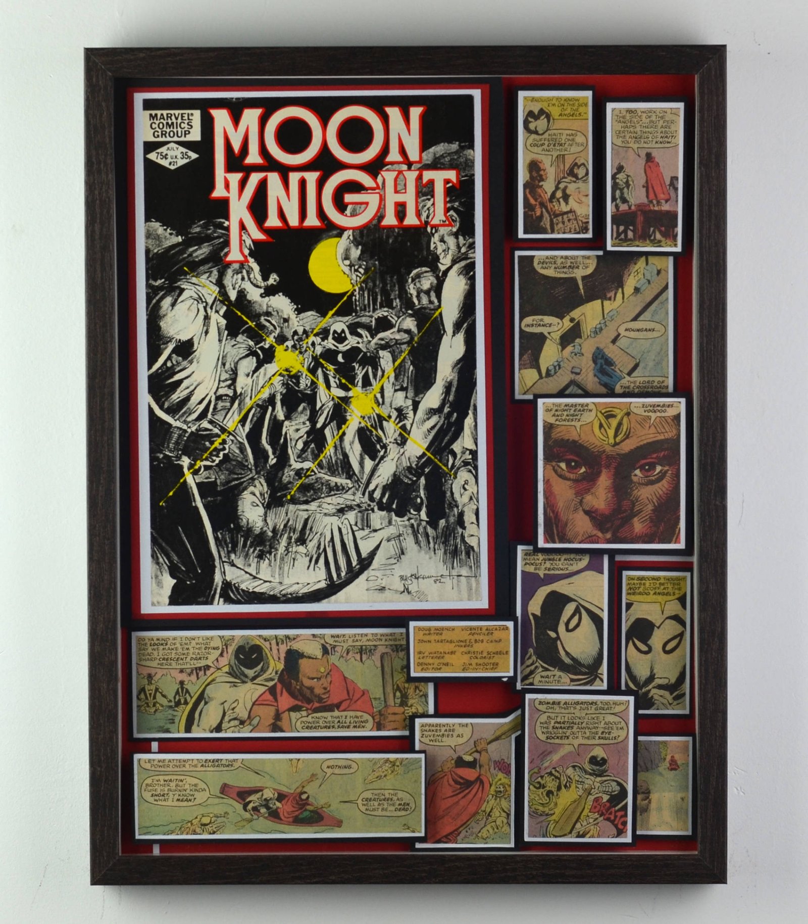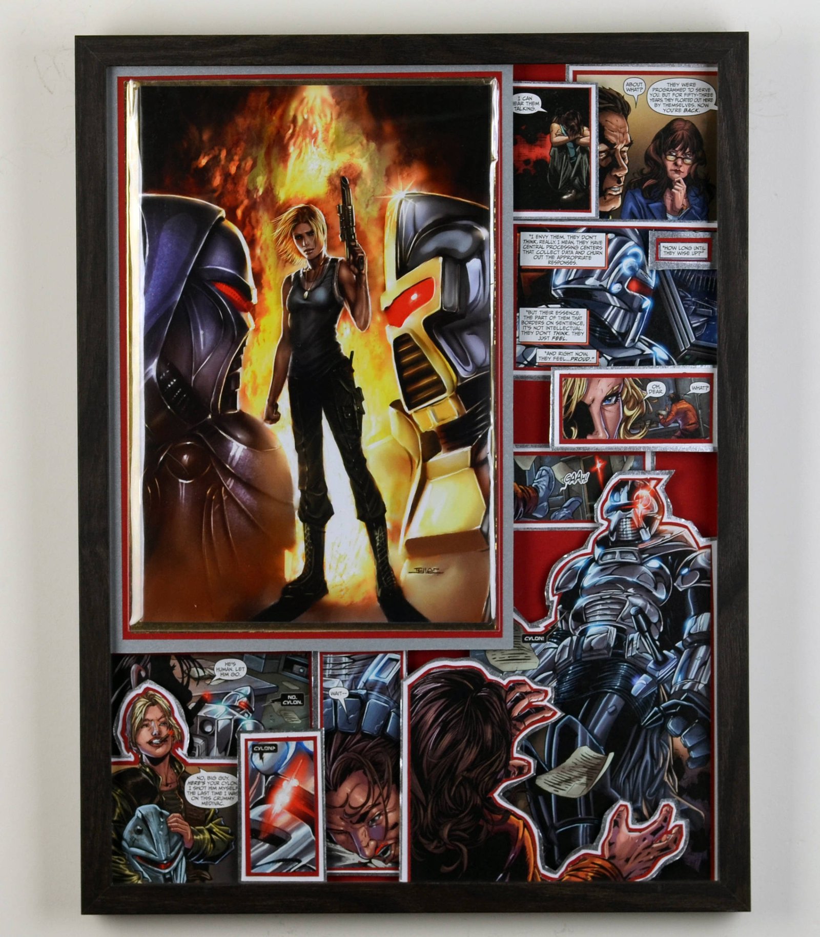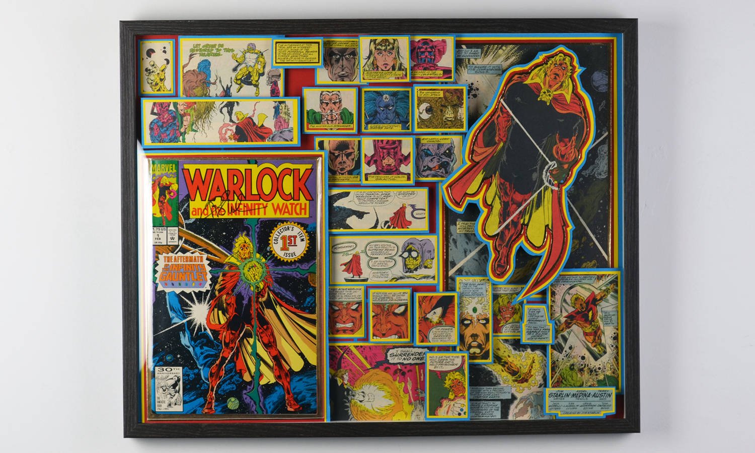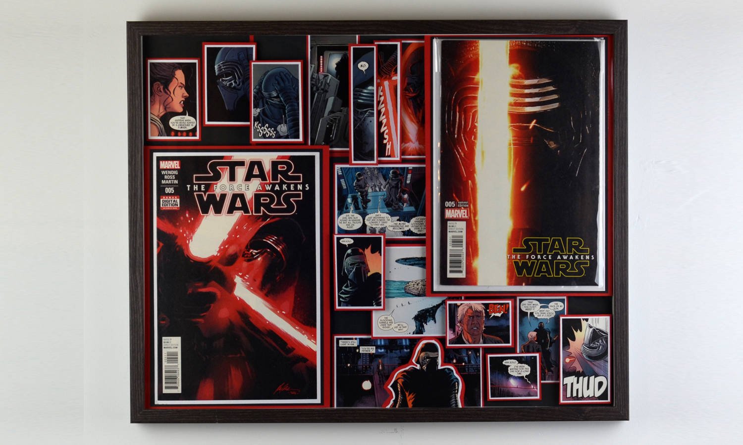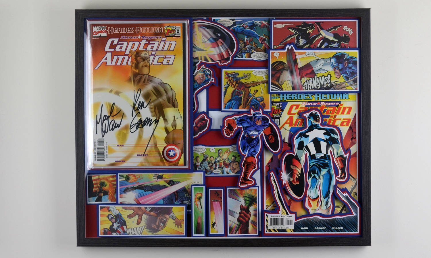 Even larger, these huge 20"x20" Treasury Edition 3D Comic Collages hold a huge punch of power in showcasing multiple books in an amazing treasury wall piece. These pieces are available only at shows or at one of our Comic Shop Partner shops since they are too big to make it safely through the mail... With a limited supply of frames in this size, commissions for a piece of this size are currently limited.